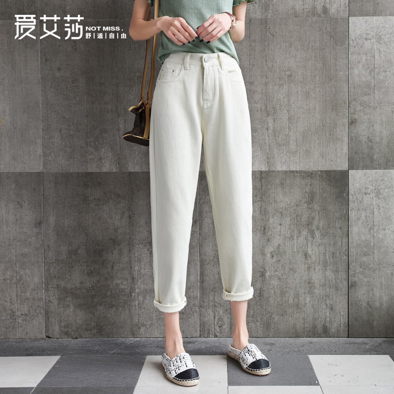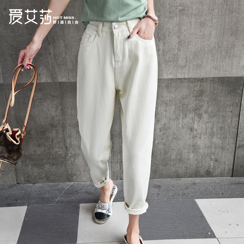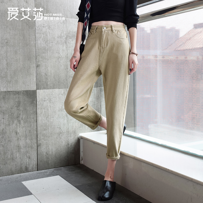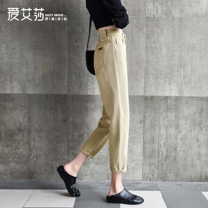 Spring and summer Korean version of high-waisted beige pants women loose straight khaki denim Harun Dad Luo Radish pants show thin