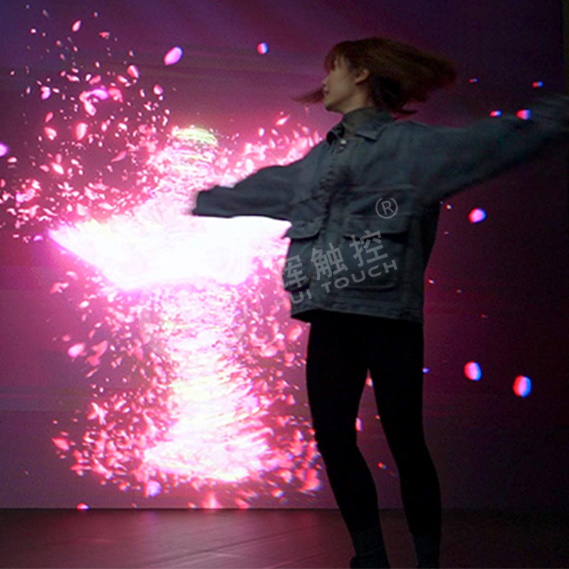 Large screen interactive human shadow sensitivity particle dance game particle body sensation interactive large screen 3D body sense game software