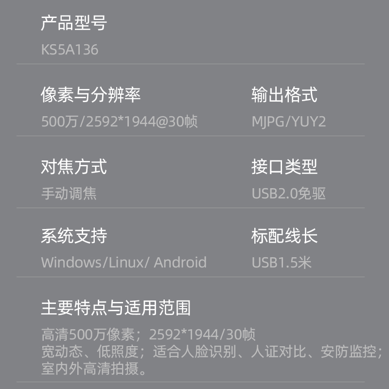 5 million wide dynamic low illumination camera face recognition card compared to HD monitoring USB interface 30 frames