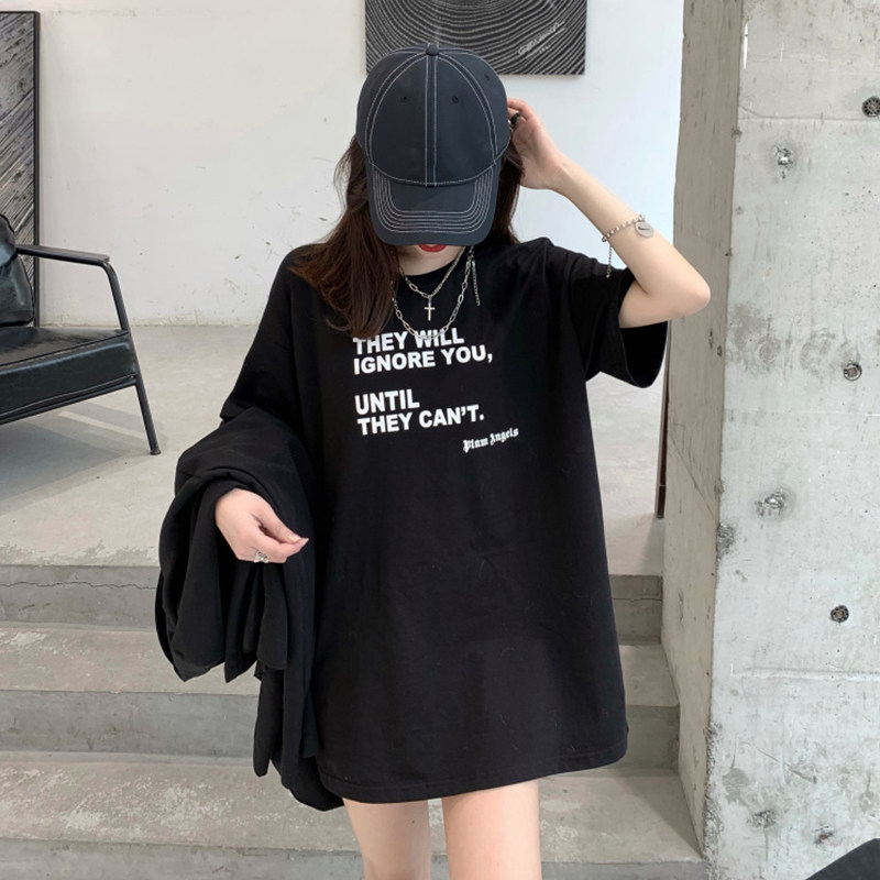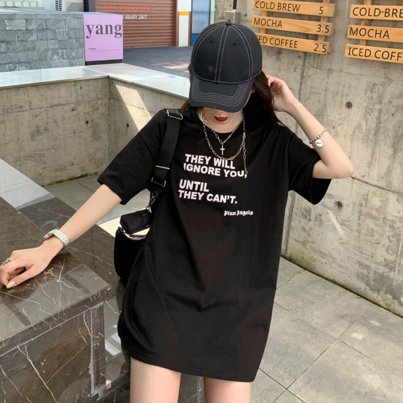Large Size Yard Pure Cotton T-shirt Woman Short Sleeve 2022 Summer Dress New Net Red Loose Medium Long Version Ins Tide Port Wind Super Fire T-shirt