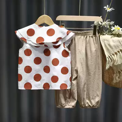 Girls summer suit foreign pie baby doll shirt two-piece set fashionable summer mosquito pants short sleeve Korean suit
