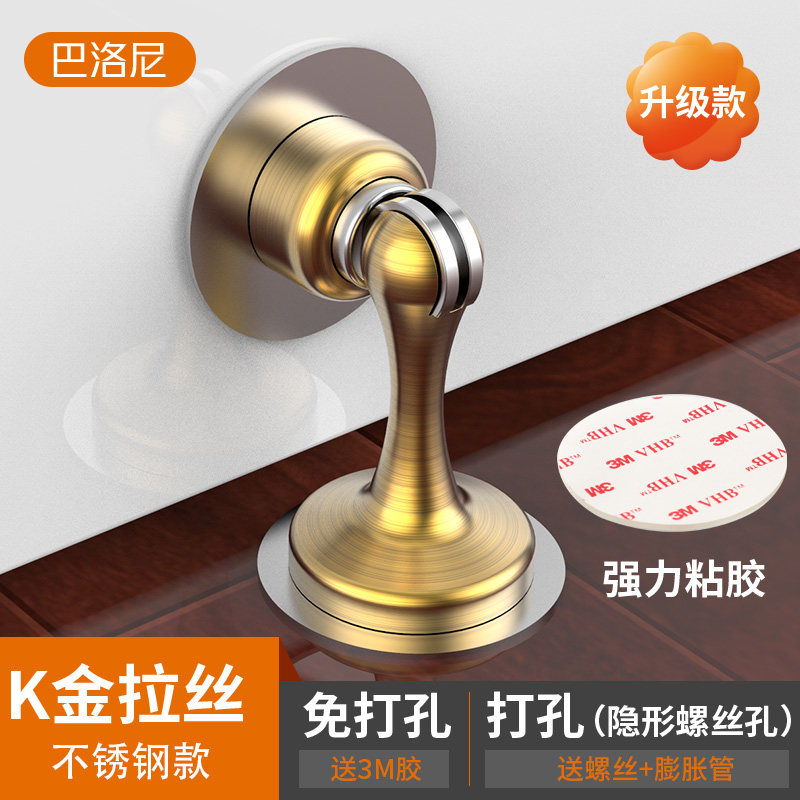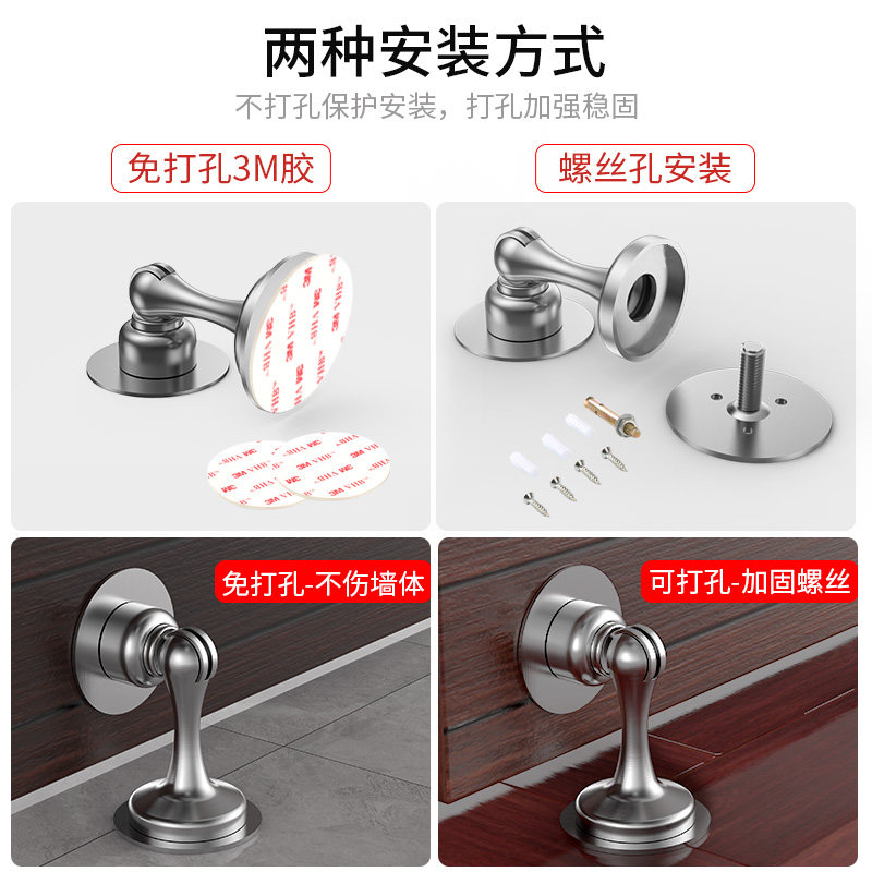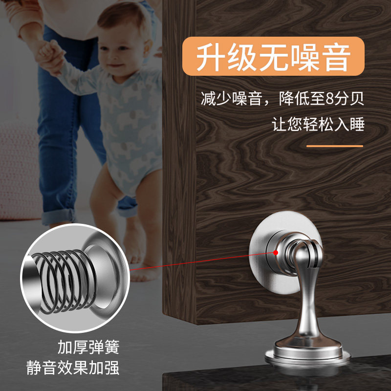 Door suction free punching door handle anti-collision household bathroom door stop stainless steel door touch strong magnetic door suction wall suction