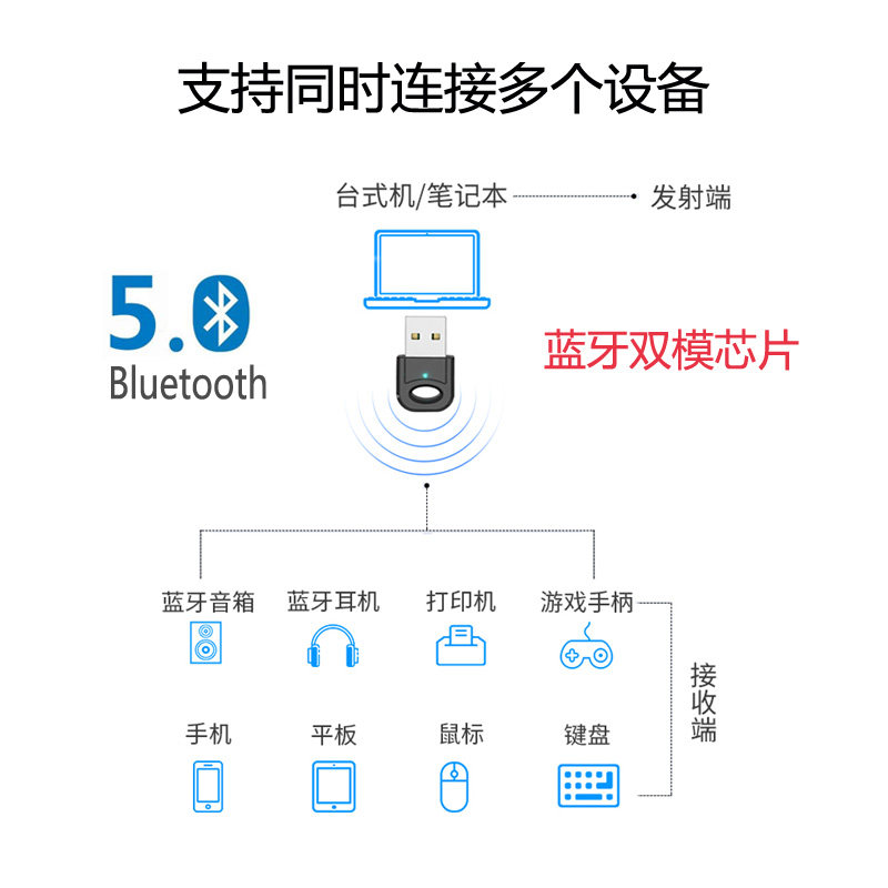 USB Bluetooth Adapter 50 External Desktop Laptop Headphone Audio Mouse Keyboard Receiver