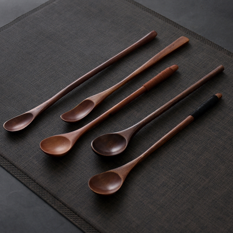 Stirring honey milk tea seasoning Japanese retro log spoon stirring spoon long handle spoon nanmu spoon wooden