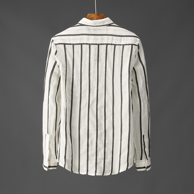 Port wind Japanese large stripe square collar cotton shirt Men's long sleeve comfortable breathable linen shirt Casual top tide E