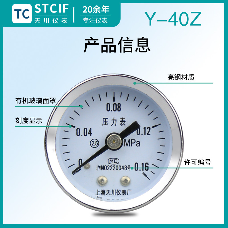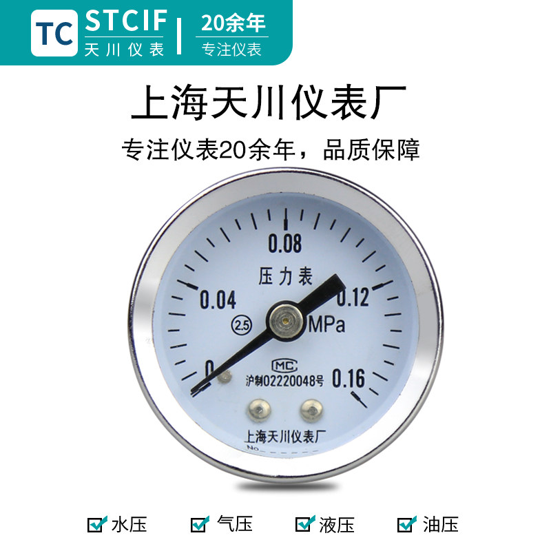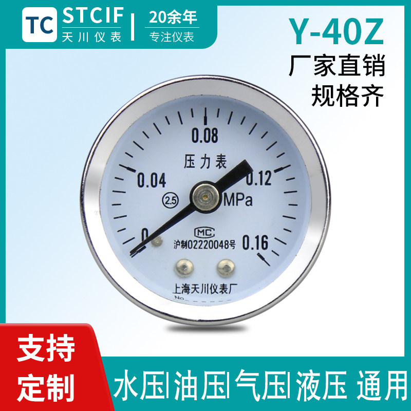 Tianchuan meter Y-40Z axial pressure meter water pressure gauge pressure gauge hydraulic small thread 1 6MPa vacuum gauge