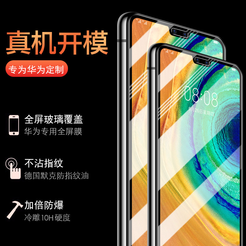 Suitable for Huawei mate30 tempered film full screen cover mte30 mobile phone anti-fall 5g anti-blue light eye protection mata anti-fingerprint meta front film all-inclusive mt30 tempered film charm special 3