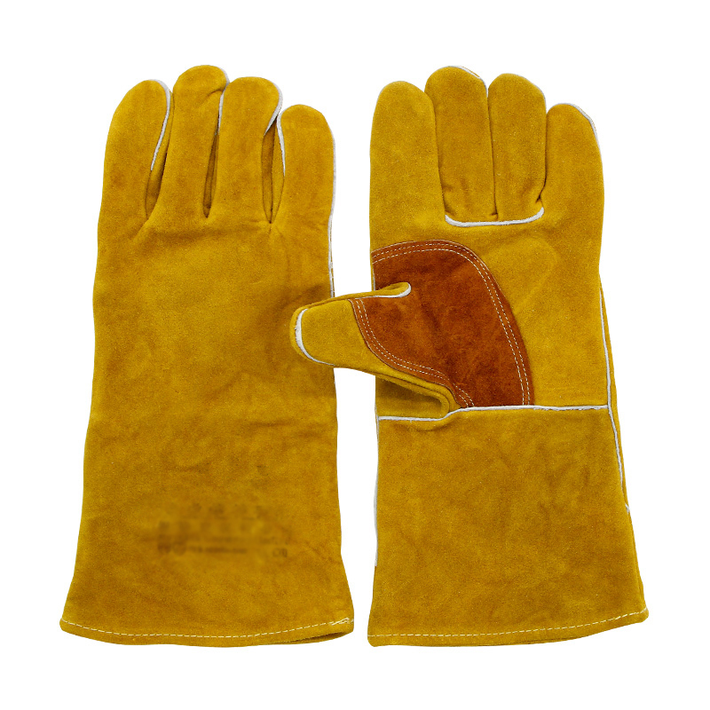Cow Leather Canvas Gloves Plus cow leather Monolayer Gloves Beige Cow Leather Double White Cotton Cotton Gloves Red Bull Leather Thickened Double Gloves Yellow Cow Leather Double protective thumb gloves Brick red cow leather double layer