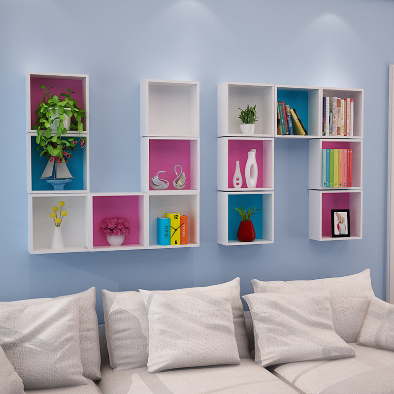 Wall Shelf Living Room Sofa Background Wall Decoration Rack Room Creative Wall Hanging Room Magic Square Plaid