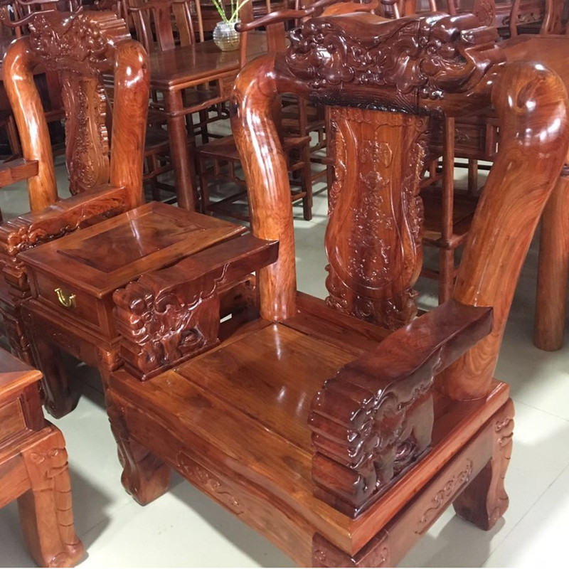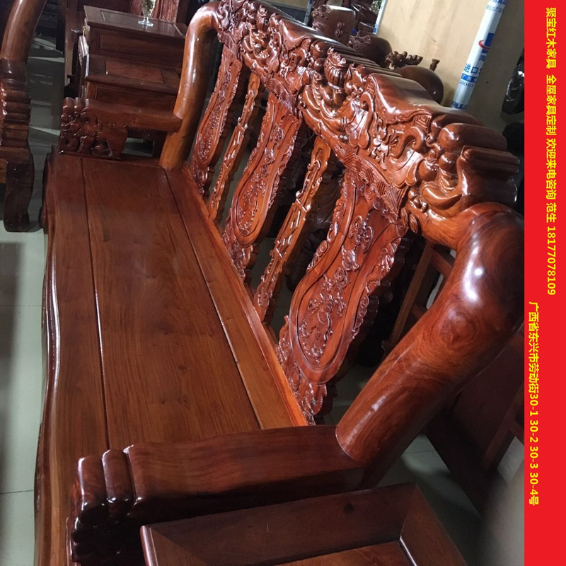 Red Wood Furniture Big Fruit Purple Sandalwood Living Room Sofa Combo Home Myanmar Flower Pear Elephant Head Sofa 12 cm 12