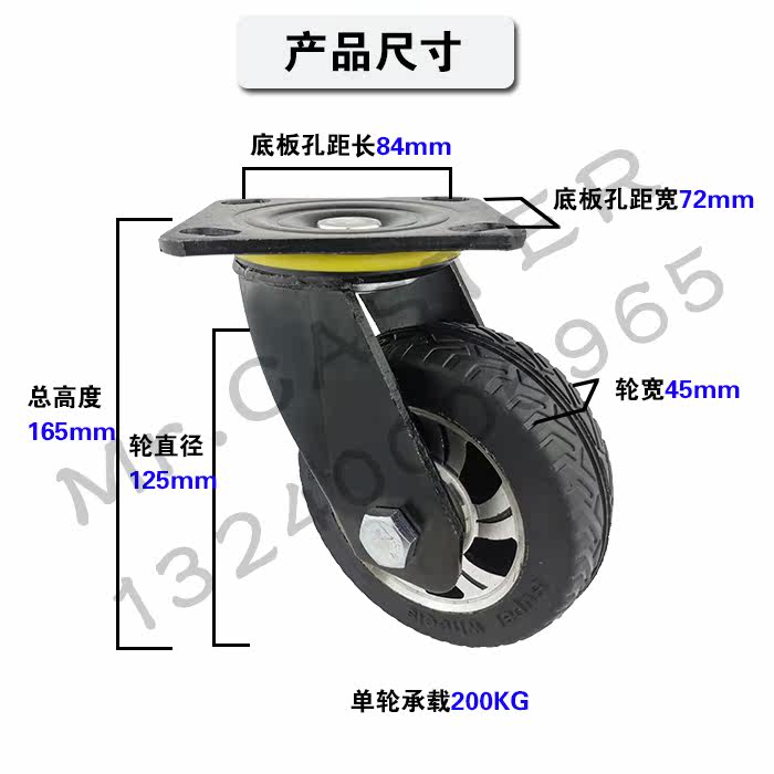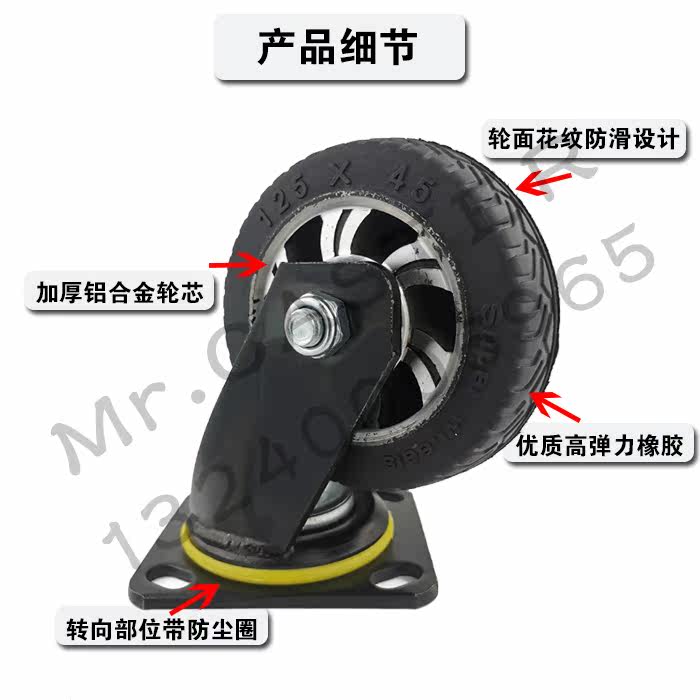 5 inch 125 * 45 mute rubber wheel aluminum core non-slip push flatbed truck electric hydraulic crane universal wheel C2