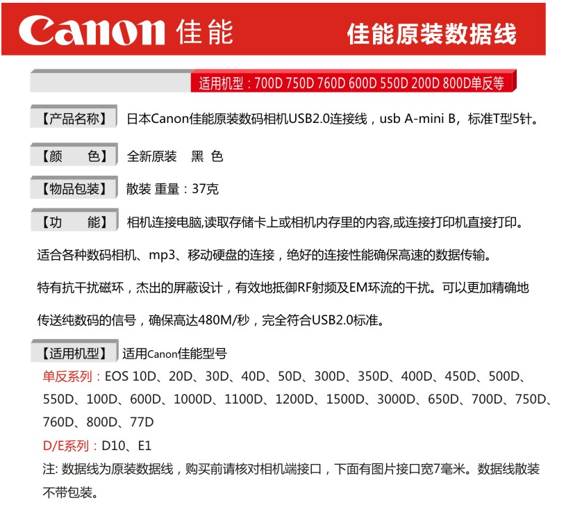 Original Canon camera EOS 77D700D 750D 750D 760D 200D800D 200D800D 200D800D Single-eye USB data line