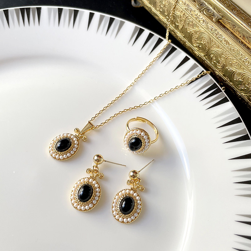 Ananas vintage jewellery European and American ins 100 lap retro brief living circle ring ear pin necklace cover