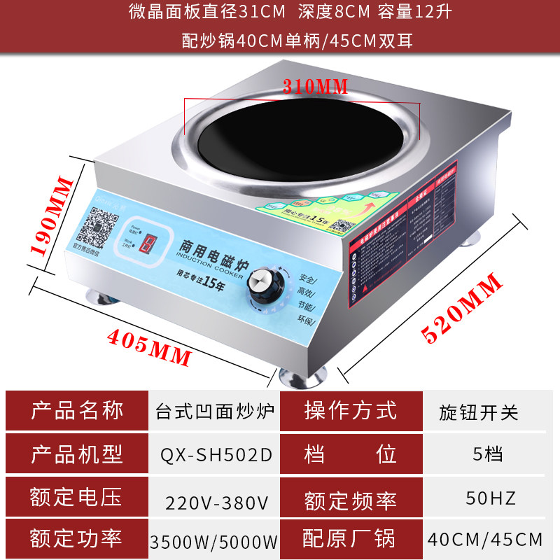 Qinxi 220V commercial induction cooker 5000W restaurant with high-power canteen concave fried electric frying furnace 3500W
