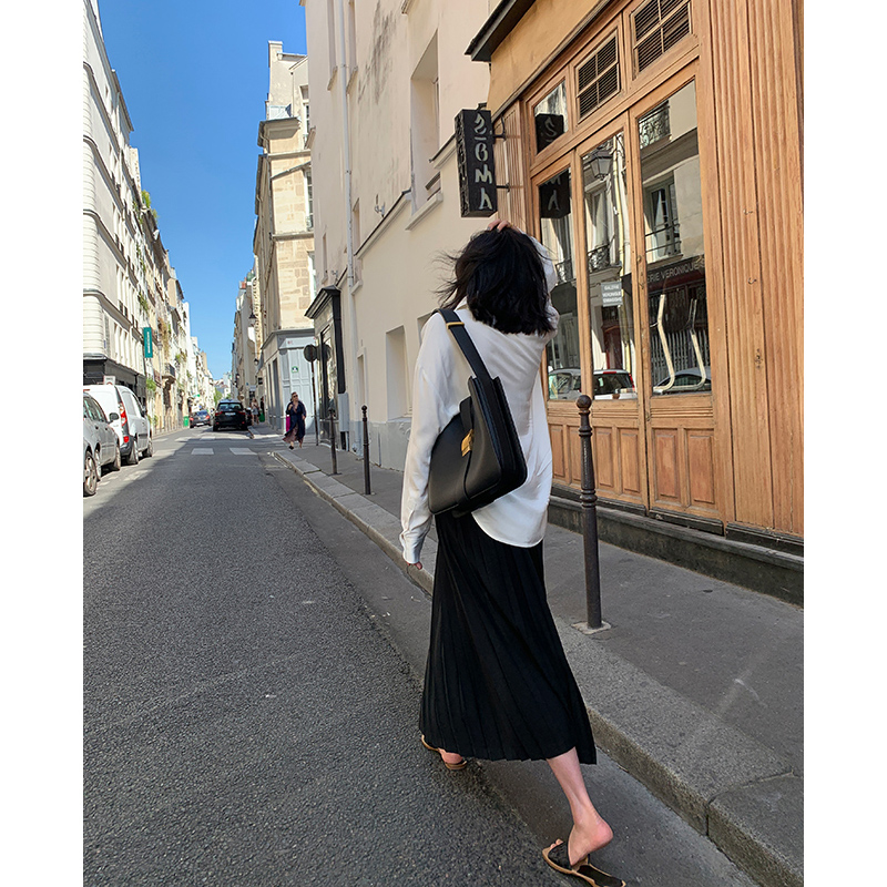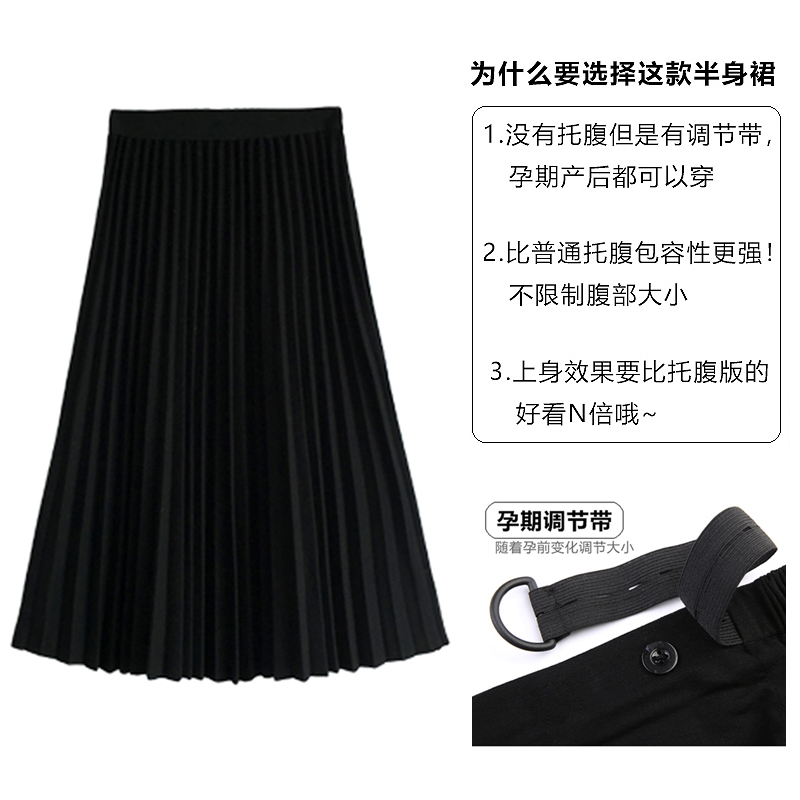 Pregnant woman snow spinning folded half-body skirt in summer loose and thin A-piece black middle and long skirt