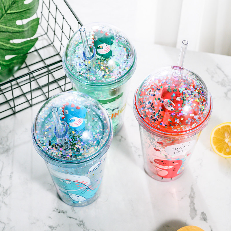 Bei Cheyu Creative Personality Trend Net Red Straw Water Cup Dinosaur Children Boys and Girls Plastic Cup Cute Cup