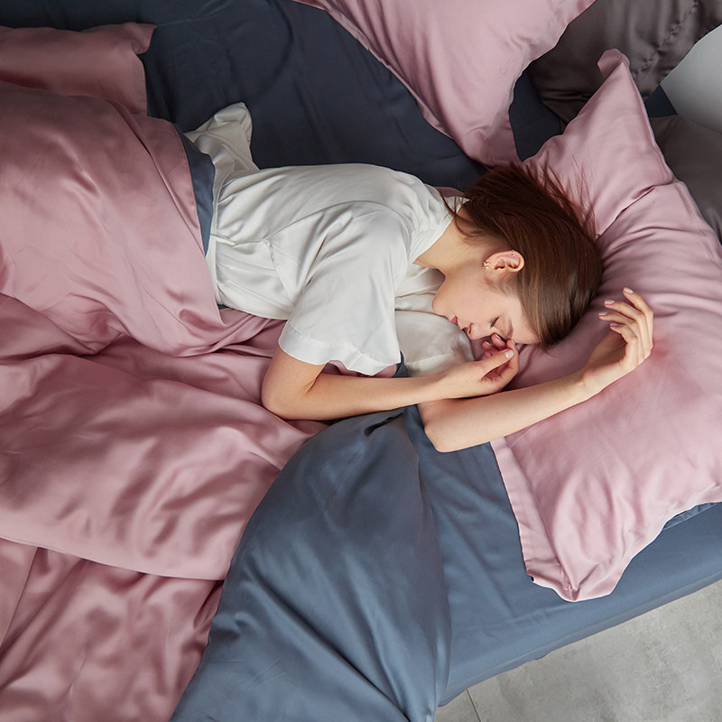 ROZENE60 double sided collage sky silk four sets silk slip cool feeling summer bed linen bed with double man bed supplies