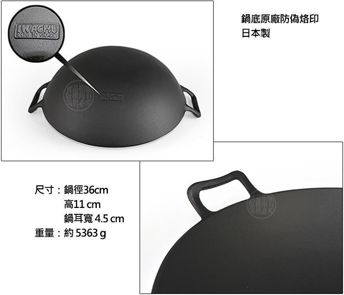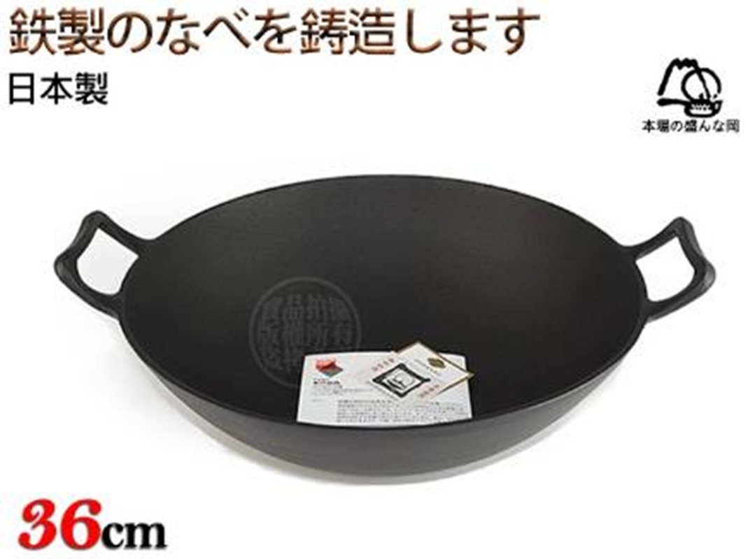 Japan Southern iron rock cast iwachu double-ear cast iron wok deep type Chinese pot 32CM 36CM uncoated