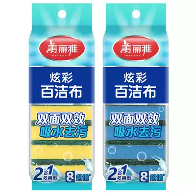 Meiliya cleaning cloth sponge dishwashing cloth Kitchen absorbent oil-absorbing decontamination rag 8 pieces bagged double-sided cleaning cloth