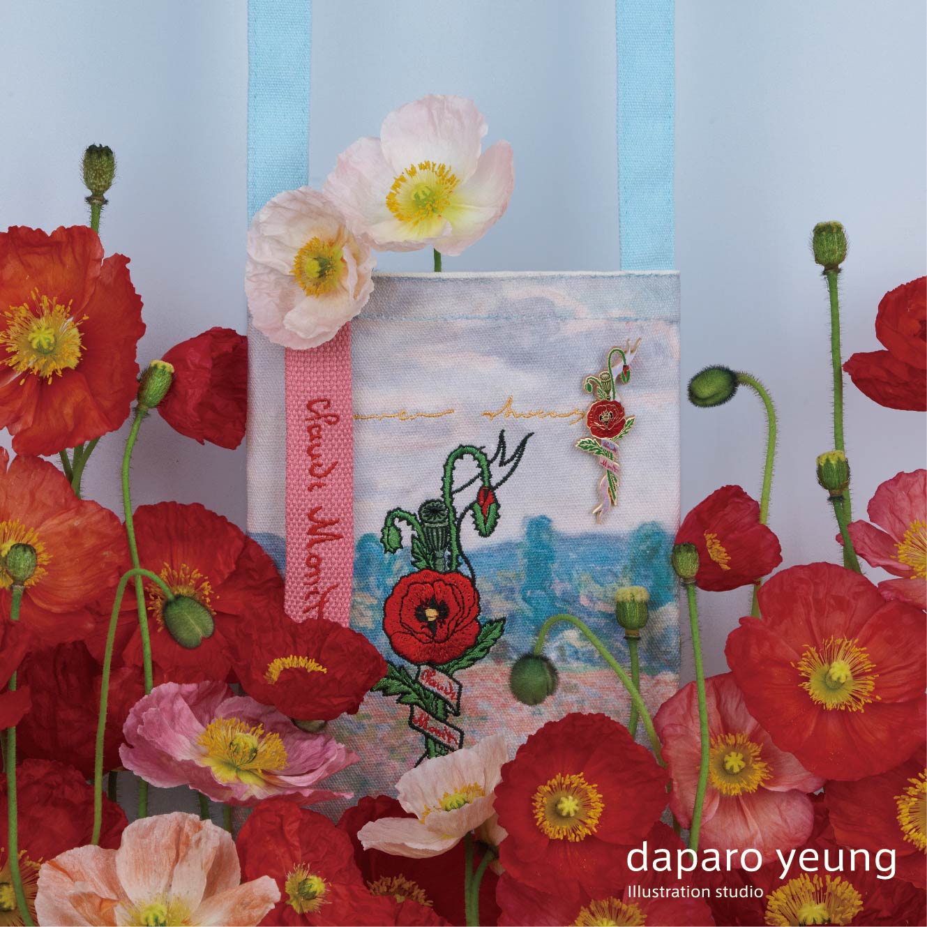 Monet's Poppy-Brooch Poppy Tiger Brooch Set Monet's Poppy-Canvas Bag Poppy-Brooch Canvas Bag Set