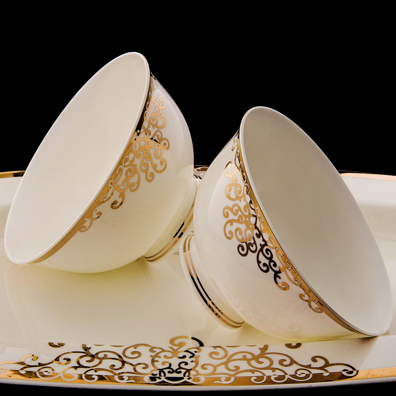 Microblemish Jingdezhen tableware Chinese style enamel colour bowls chopstick disc European style bone porcelain suit Home rice bowl Fish Dishes