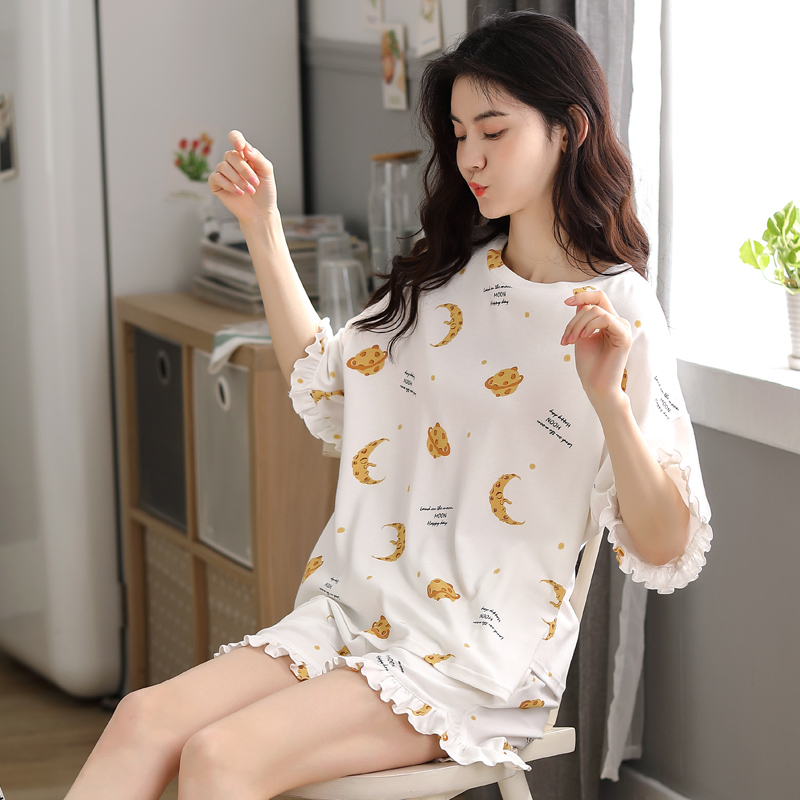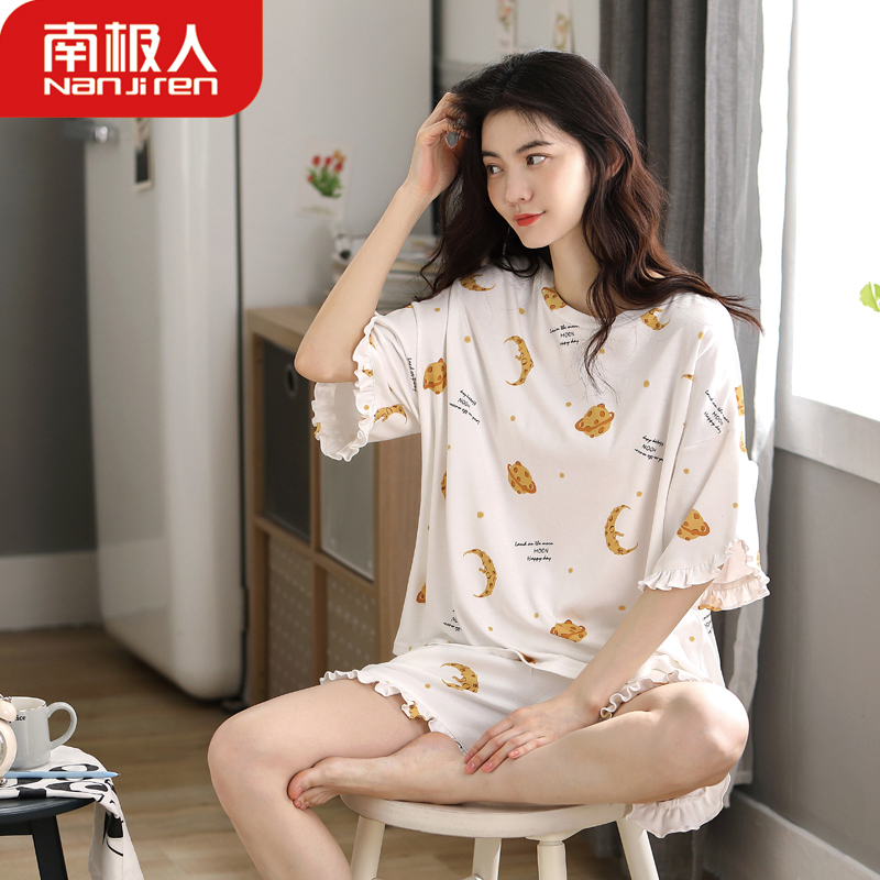 Antarctic pure cotton pajamas women's summer thin short-sleeved shorts Women's spring and autumn home clothes two-piece suit summer