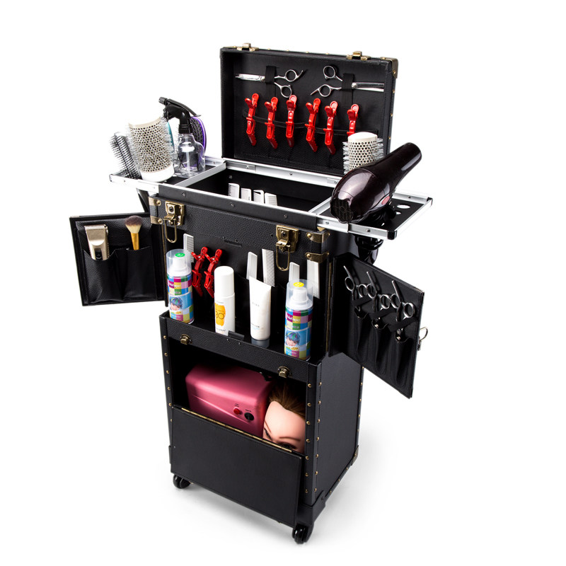 Professional hairdressing toolbox hair stylist pull rod personality retro vibrato with the same stylist big tool box scissors box