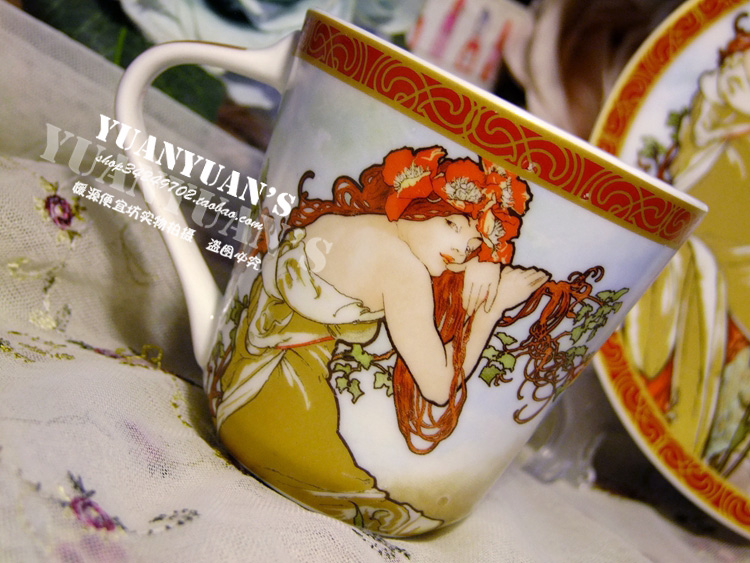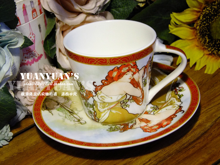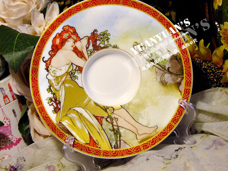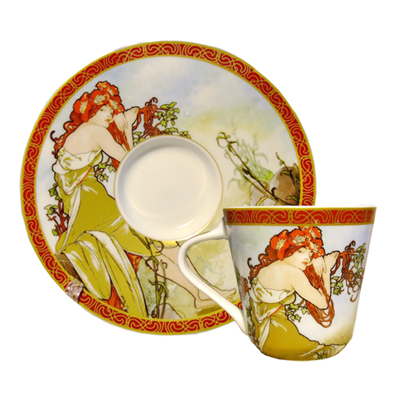 Polish production CARMANI Artist Muscia Alphonse Mucha Summer girl Bone Porcelain Coffee Cup Saucer