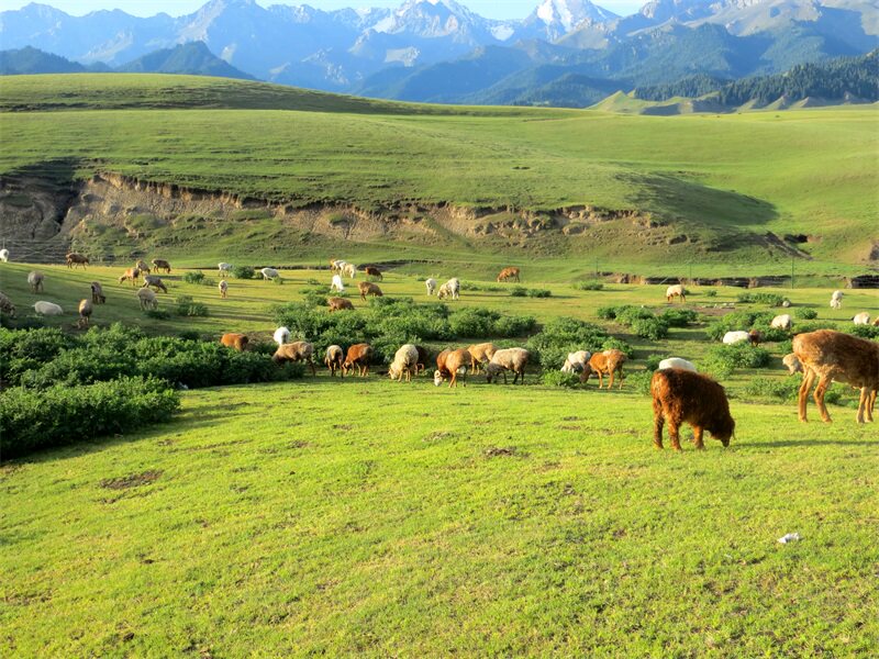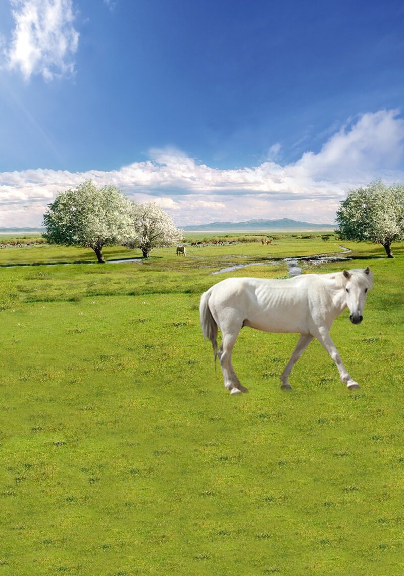 Inner Mongolia Prairie cattle and sheep Forest forest landscape shooting video segment anchor background cloth spring 3D three-dimensional