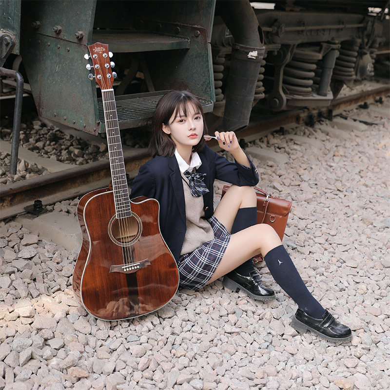 Casida 41-inch veneer folk guitar beginner girls male students beginners self-learning wood bright brown