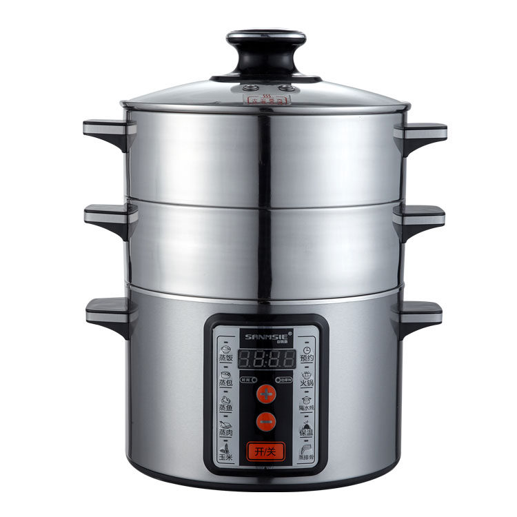 Sam Sans Home Mini Small electric steam boiler multifunction three-layer stainless steel anti-heating timing insulated quick cooking pan