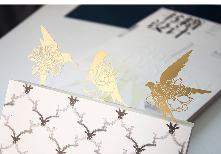 Miss Card Lady Metal Brass Hollowed-out Delicate Bookmark Flowers Bird Feiyan Creative Art Gift Lovers Birthday Gifts