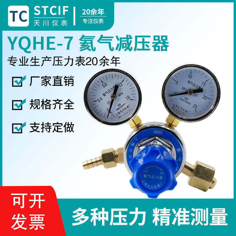 Shanghai Tianchuan YQHE-7 helium pressure reducer pressure regulator pressure gauge 1 6MPA gas cylinder helium pressure reducing valve