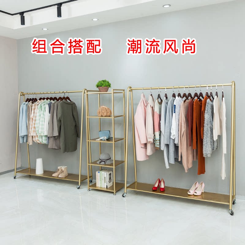 New European-style brief hanging clothes hanger light extravagant male and female children's clothing store straight interplay room with wheels removable hanger clothing shelves-Taobao