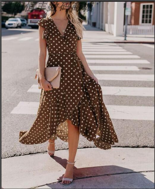 Womens summer casual beach V-neck falbala long dress skirt