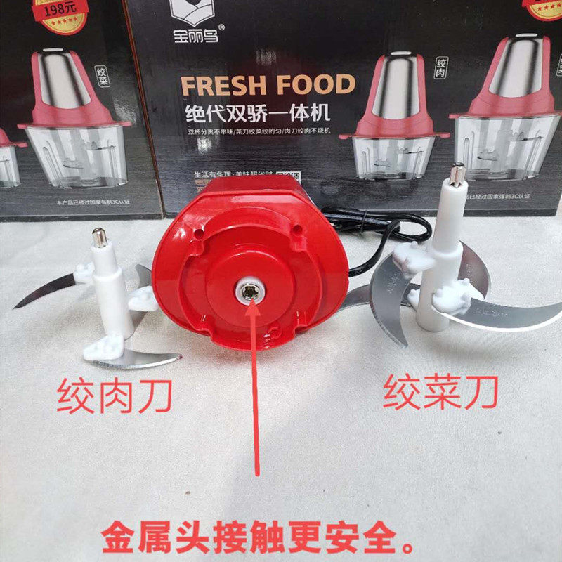 Household double-cup double-knife meat grinder multi-functional electric chopping stuffing stirring pepper garlic baby food supplement