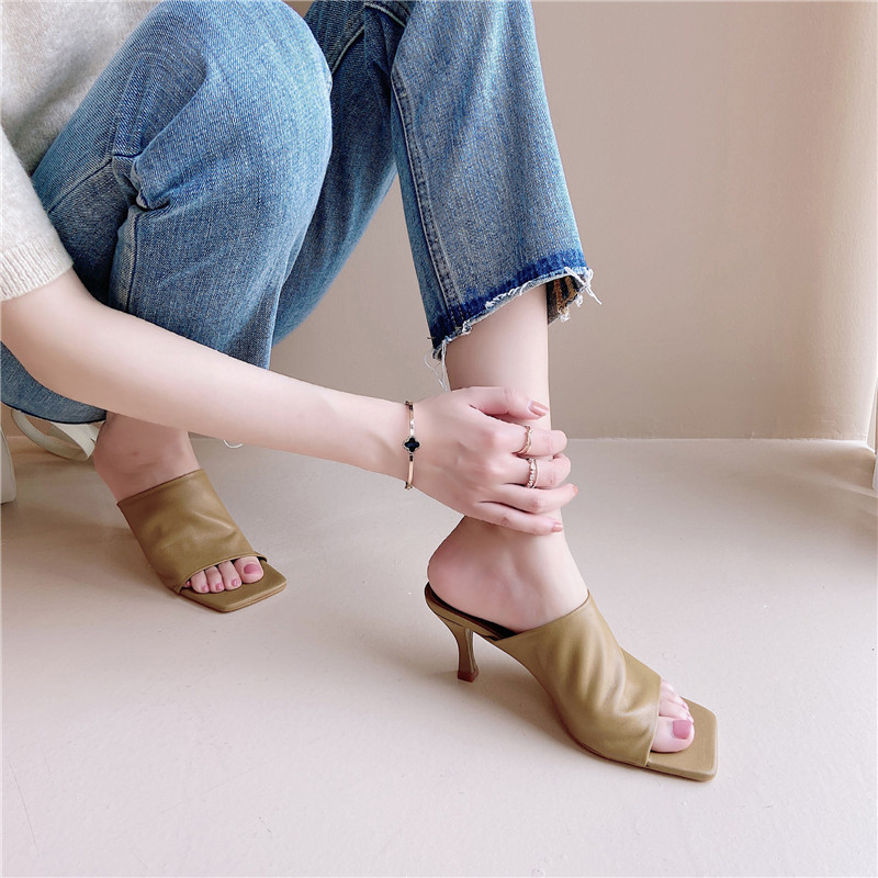 Chic giant comfortable simple all-match stiletto leather outerwear Muller word sandals and slippers high-heeled sandals for women