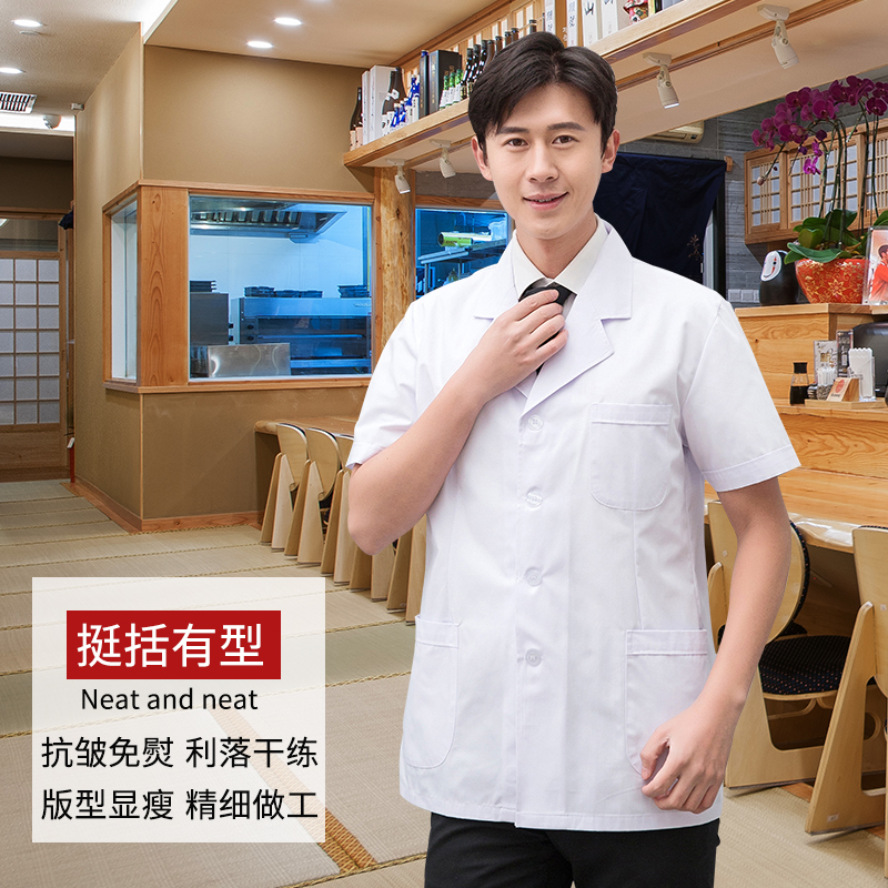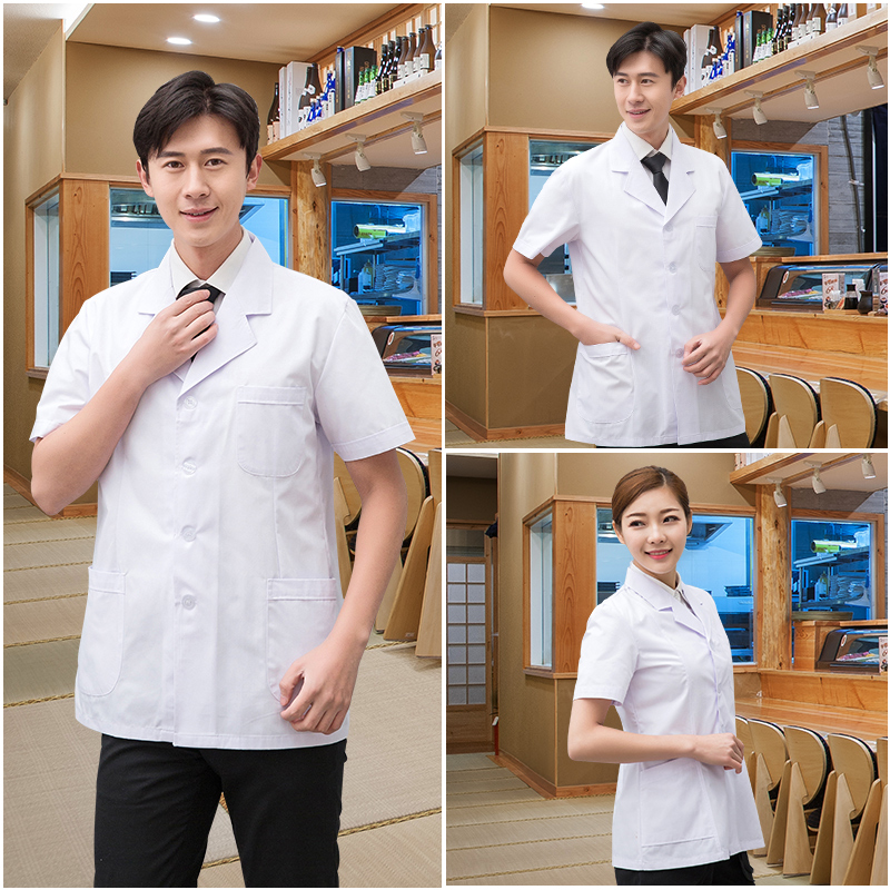 Five Ring Fine Honest White Coat short sleeves Short sleeves Half body Male Oral Section Doctors work Two-style mini-coat