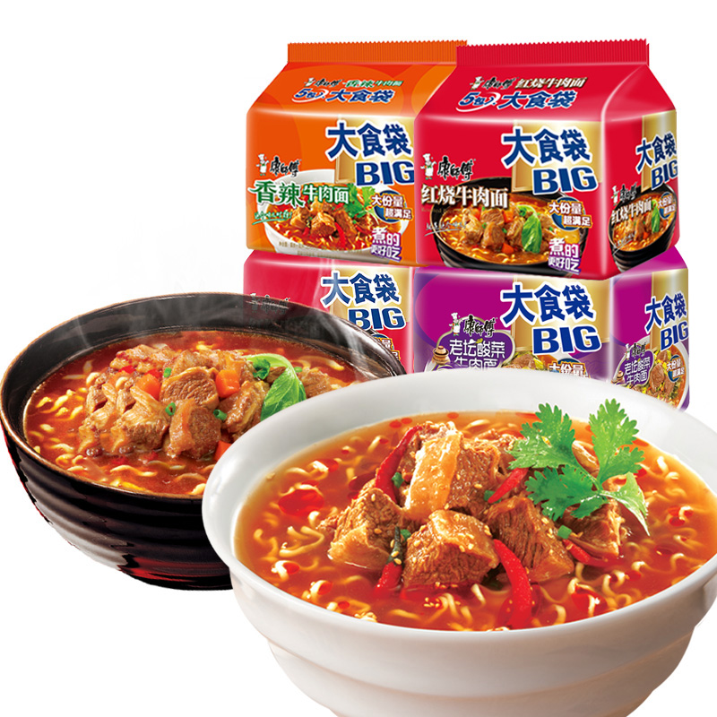 Braised Beef Noodles,Big food bag (Spicy braised Sauerkraut)3 bags of mixed big food bag (braised beef) 5 bags*145g Big food bag (Laotan sauerkraut) 5 bags*162g Big food bag (spicy beef)5 bags*
