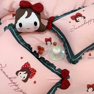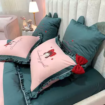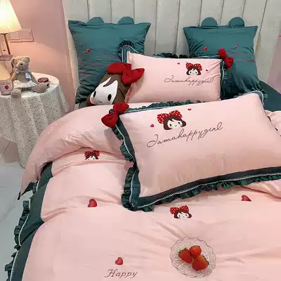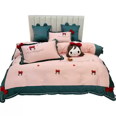 60 long-staple cotton four-piece cotton cotton princess style cute girl heart embroidery lace quilt cover bedding