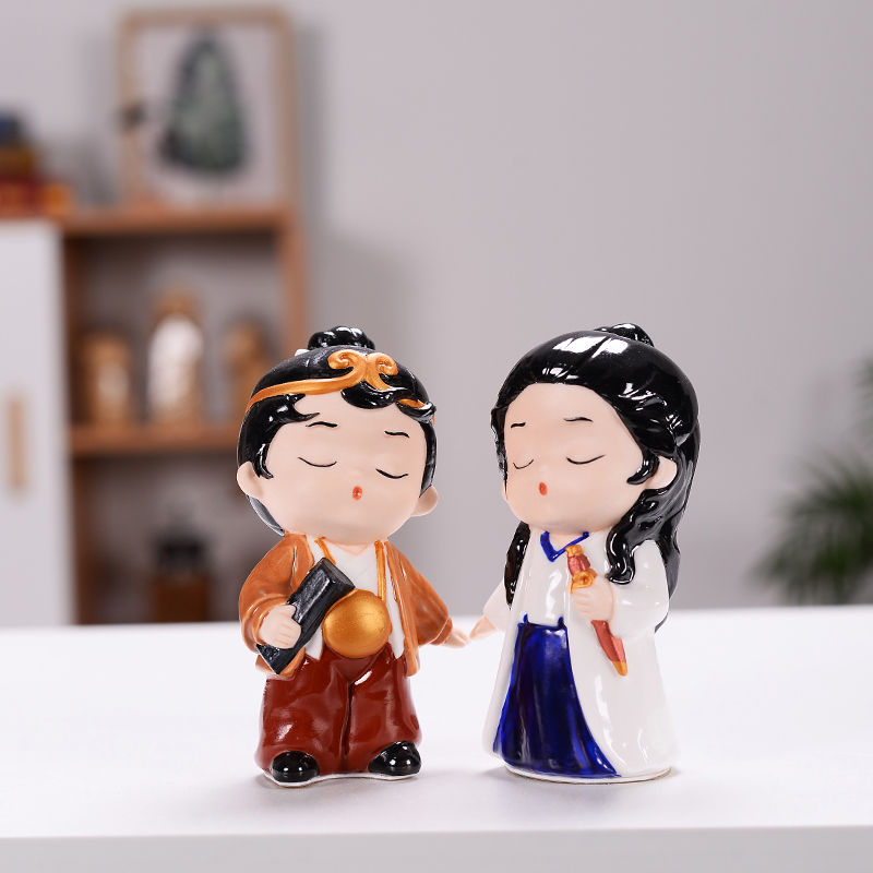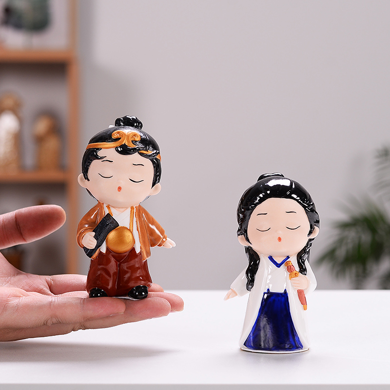 Tao Chinese ceramic home living room small swing piece Sun Wukong Sun Zhuangbao Zixia Fairy Couple Desktop