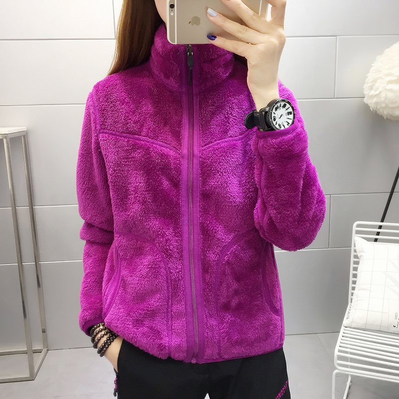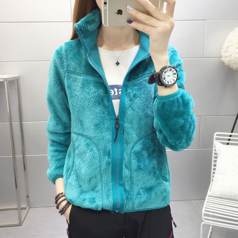 Wear fleece clothes on both sides Autumn and winter outdoor women's mountaineering sportswear Coral velvet windproof warm thickened jacket