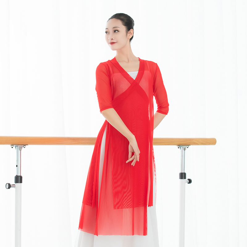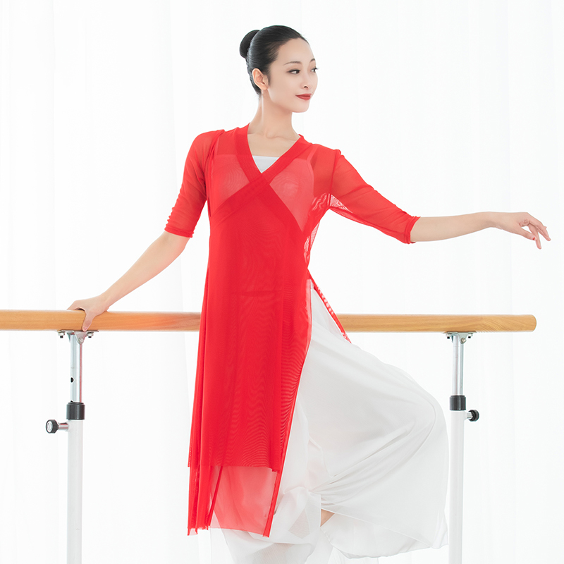 Stretch Chinese classical dance cheongsam mesh tops slim fit modern dance practice clothes body smocks yoga clothes
