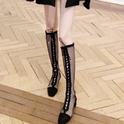 Tide ring B prepared the gai god instrumental square head coarse heel summer net boots high heel black frosted cave long boot tide