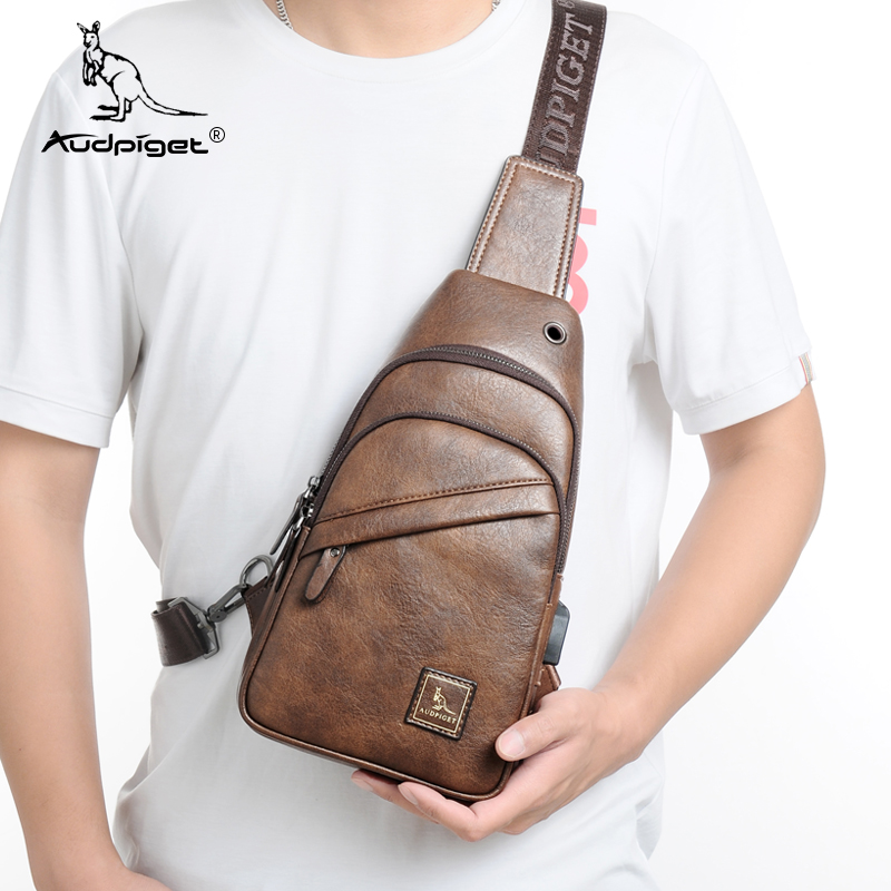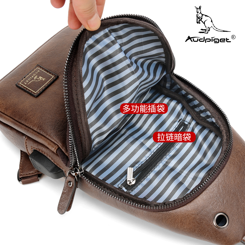 Duppi Kangaroo men satchel satchel casual single shoulder bag inclined satchel chest front small scapegoat leather bag fashion chest bag