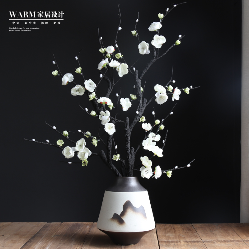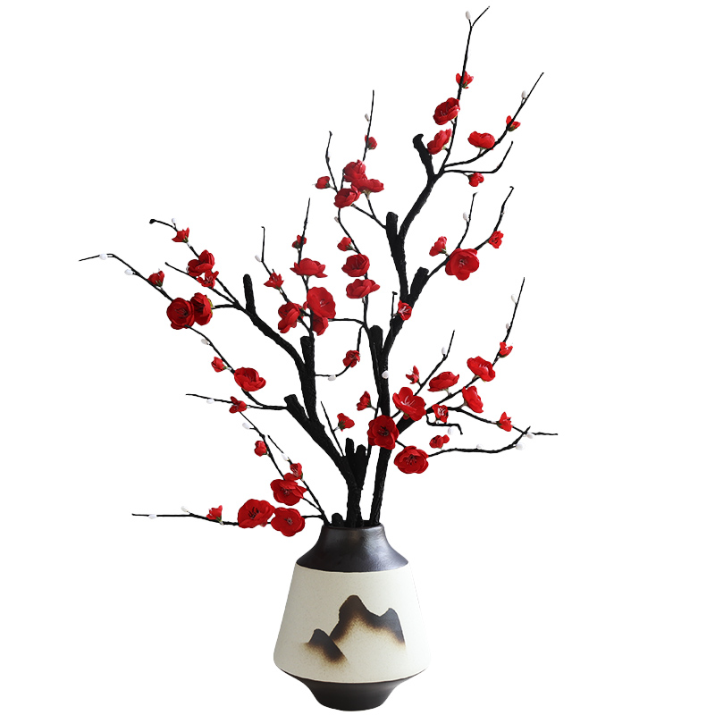 Retro vase ornaments ceramic living room simulation flower arrangement creative ornaments new Chinese flower decoration table red plum