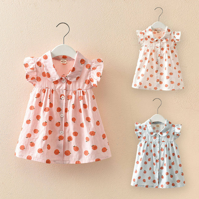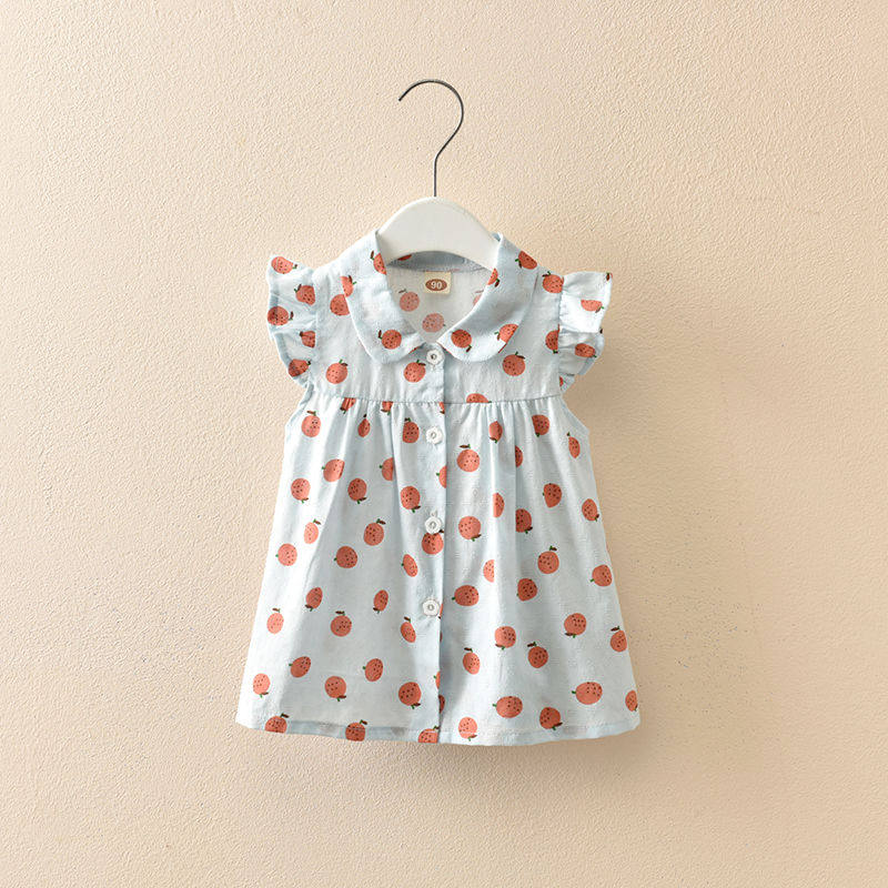 Summer female baby T-shirt blouses thin 3-year-old girl short sleeve 2 children small crushed flower lining pure cotton 4 ocean gas summer