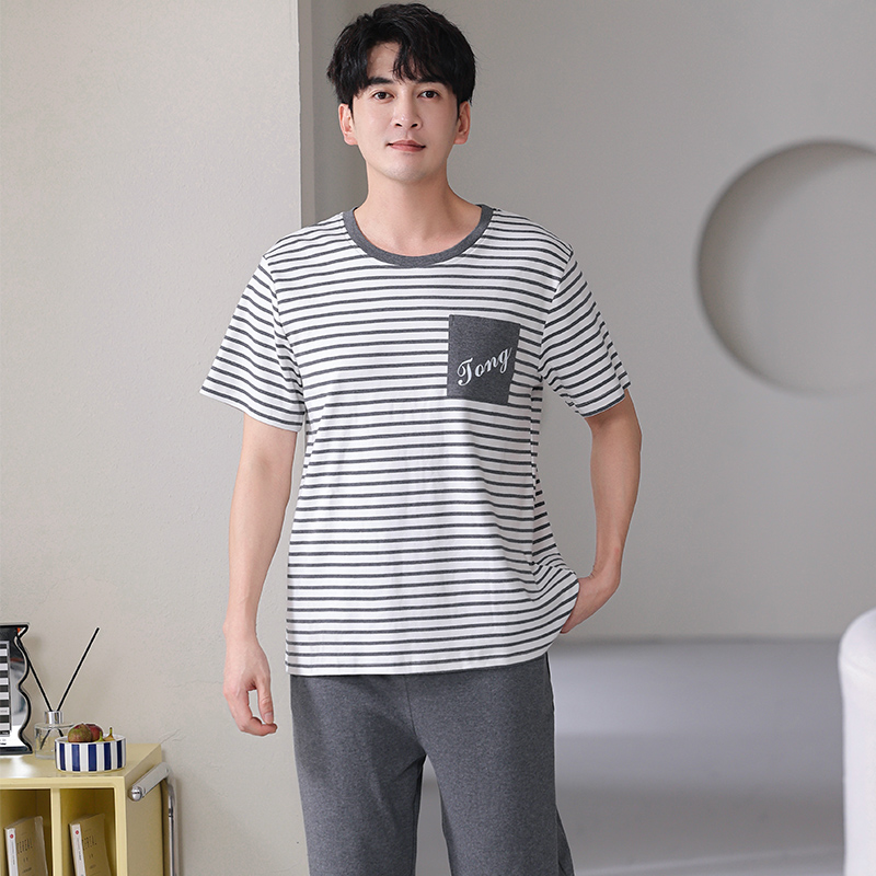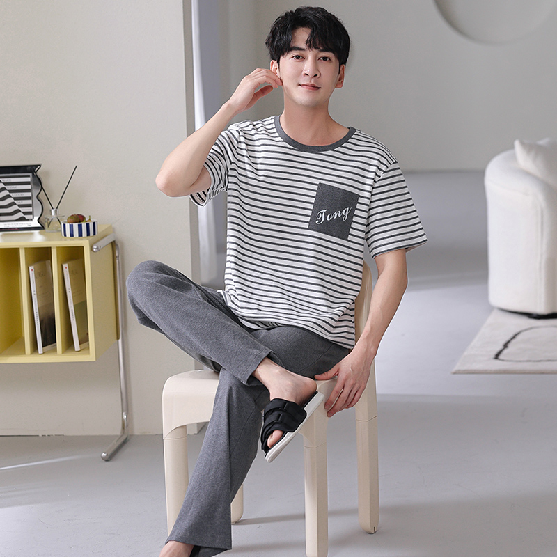 Men's pajamas summer pure cotton short sleeve trousers thin suit summer large spring and autumn models can wear home clothes