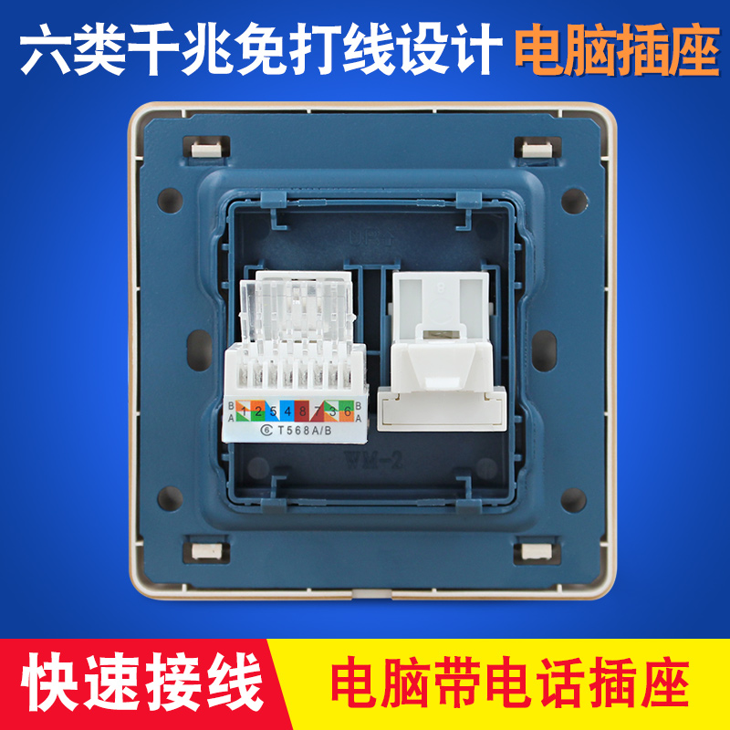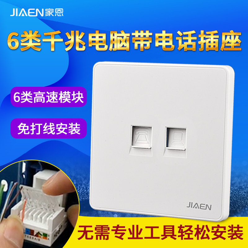 Telephone broadband computer six types of sockets Gigabit 6 types of rj45 computer network cable socket plus rj11 telephone socket