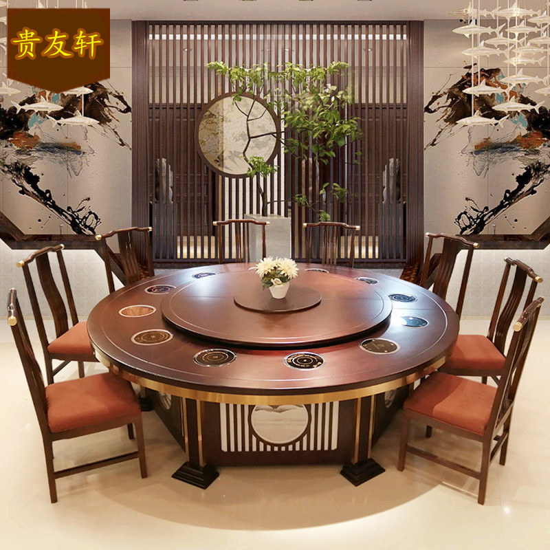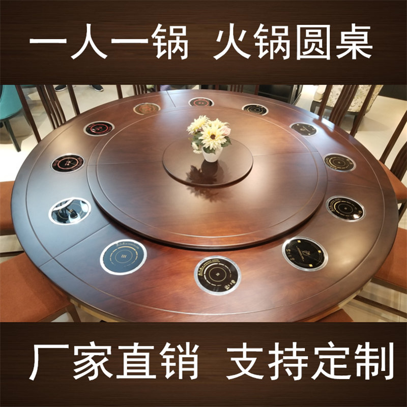 Hot pot table round table with induction cooker integrated turntable hotel box table and chairs 12 people hotel electric dining table large round table